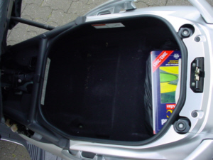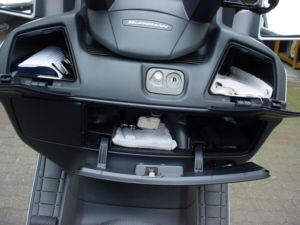 | 56 Liter großes Helmfach, reicht für 2 Helme und mehr. | Abklappbahre Außenspiegel bei engen Durchfahrten. |